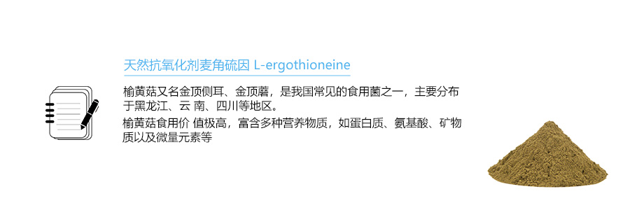 【产品名称】: 麦角硫因(榆黄菇萃取物) 【英文名称】: L-ergothioneine