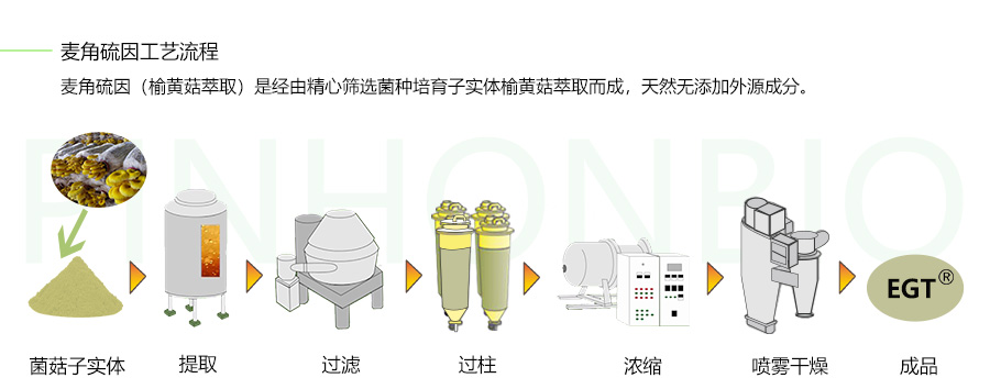 研究证实,食用菌是麦角硫因的主要来源之一。榆黄菇是富含麦角硫因的一种食用菌, 可用于麦角硫因的提取制备。由于榆黄菇提取物中麦角硫因含量低,颜色深,有必要进 行富集和脱色。榆黄菇提取物不仅含有麦角硫因,其他活性成分如多糖等。