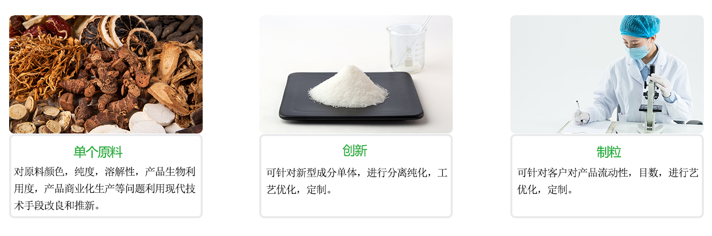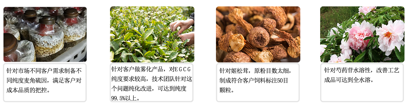 关注市场需求,专注天然成分原料的制造工艺改造和提升,关注天然原料应用的革新,为客户配方要求订制独一无二的粉末状、浸膏状或油状的天然原料,为您的产品的改革和创新,提供天然原料的应用方案。